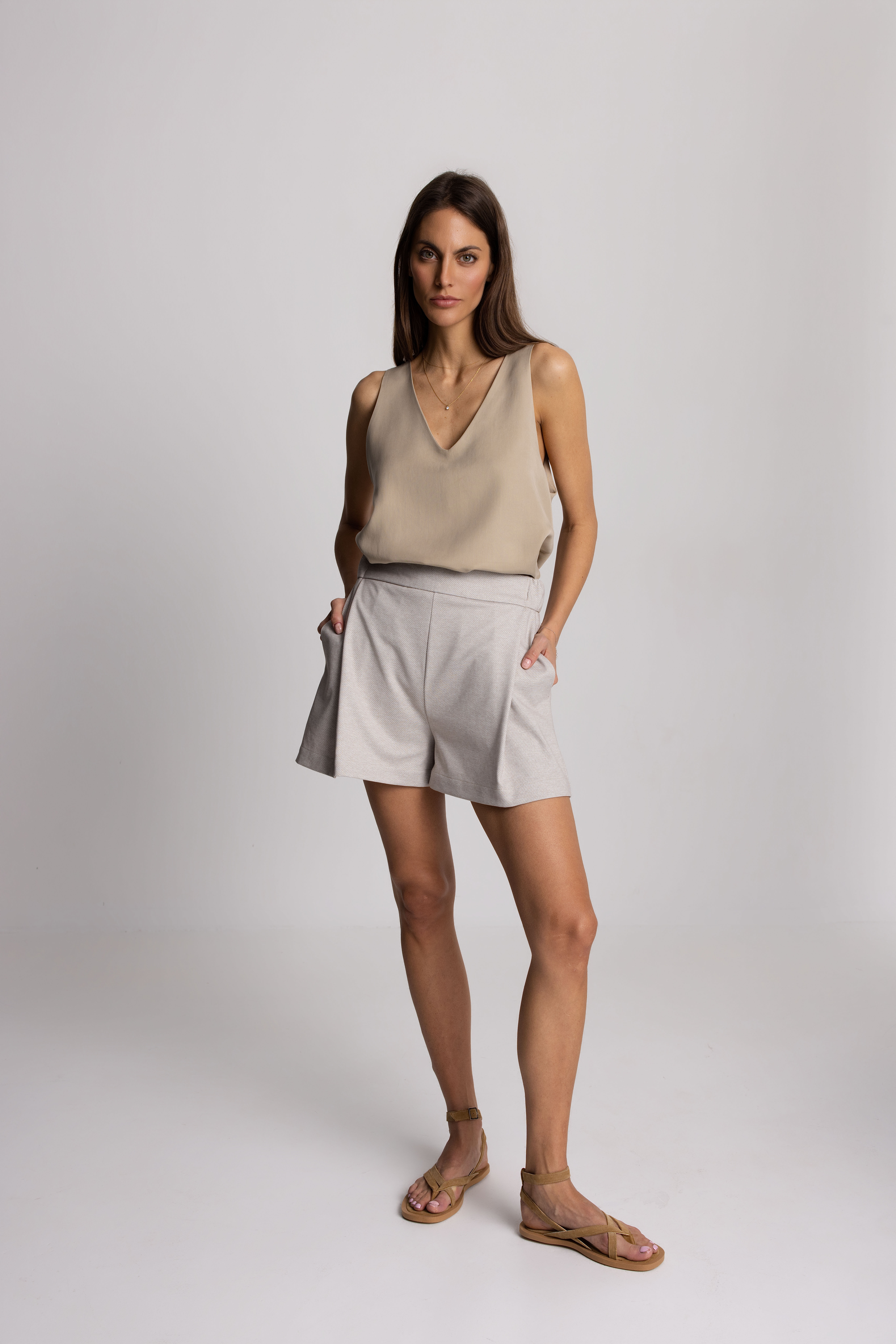 Materials:Introducing the Ikona Structured Bermuda Shorts in sand beige color — an effortless fusion of strength and softness, crafted for women who dare to live their dream.
